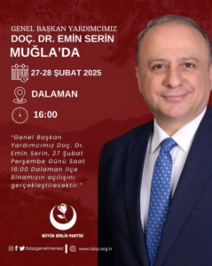 Büyük Birlik Partisi (BBP) Genel Başkan Yardımcısı Doç. Dr. Emin Serin, bir dizi ziyaret ve açılış için Muğla’ya geliyor.